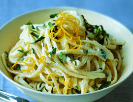 A big thanks to the kind person at Vegetarian Times who enjoyed the Classic Plain Vegan Cream Cheese and then turned us on to the recipe Linguine in Lemon Cream Sauce, which she had used light cream cheese in and we agreed could easily be swapped out for ours. Well, we did (swap it out that is) and oh the pasta dish was so so good. In advance of giving you the recipe we are going to encourage you to get pen and paper ready to write down what you need (should you not have everything in your house, pretty short list so you might) and let the family know you’ve got dinner tonight. Oh, and serve with a nice salad on the side with some fresh greens and tomatoes dressed in a nice light extra virgin olive oil based dressing with Hawaiian Sea Salt (sold at gourmet shops, Whole Foods Markets) and freshly squeezed lemon juice.